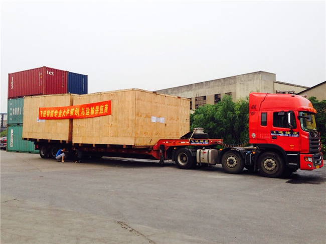 重大件运输——大型三超货物运输方案策划及实施 飞进物流拥有0.6吨至300吨间不等的大件平班车辆28台,利用自身先进的技术优势和完善的机制,在大型工程机械进出到港、散杂大件特种箱(FR、OT)、 机械设备(整套风电工程设备、核电工程设备)、容器及工程施工整机的运输方面有良好的渠道优势和资深的业务经验。